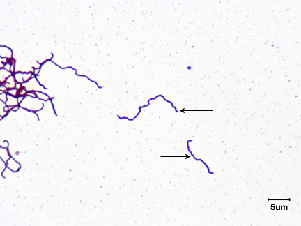 The spirochete Treponema pallidum , the bacterium that causes syphilis. A spirochete is a thin, flexible spiral.