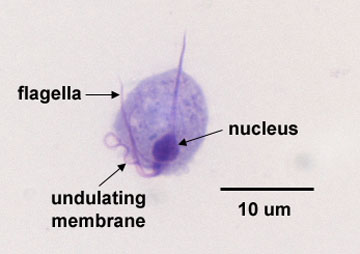 Note large nucleus, flagella, and