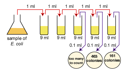 A sample of E.coli is diluted