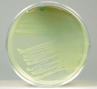 Fig. 10C: Pseudosel Agar Plate Culture of the Chromogenic Bacterium Pseudomonas aeruginosa